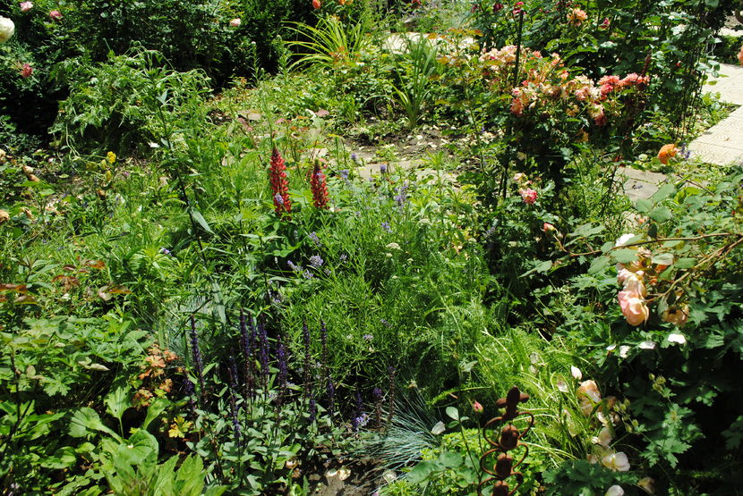 in gradina din fata casei(gradina rozelor+ aleea rozelor, nu?!), o sa scot lalelele, brandusele, narcinele.. replantez o parte din ele, pun perene( cu flori albastre, majoritatea), irisi, ierburi, las mai putin myozotis ... scot restul de gazon dupa alee (aleea umbrita) si pun heuchere, iedera, ferigi, hosta, carex, geranium.. si in vara asta o sa fie "ultima strigare" si pt roze, ultimile modificari, zic..